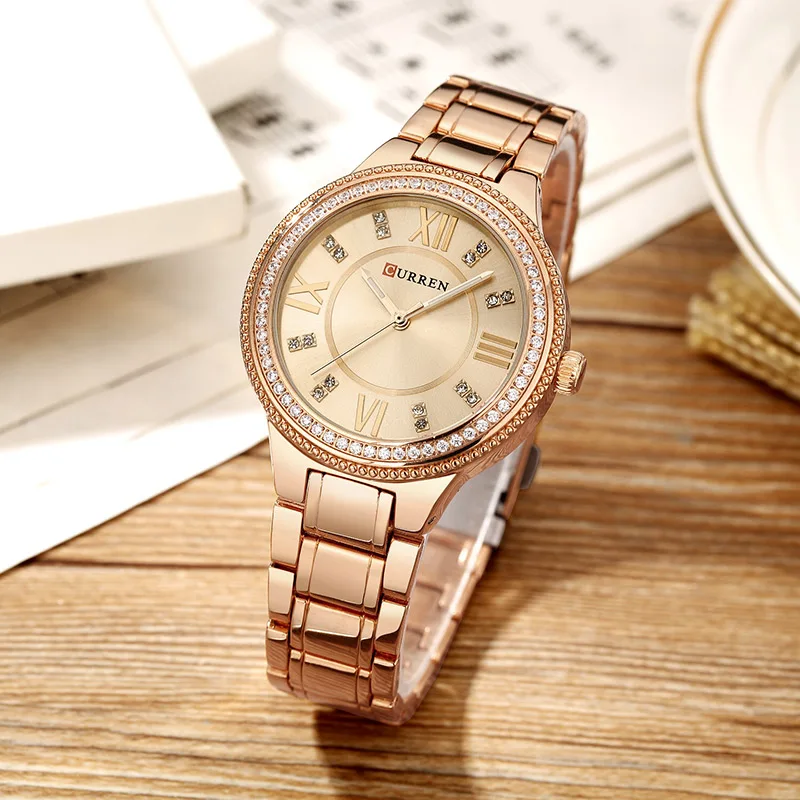 CURREN Brand Luxury Women's Casual Watches Waterproof Wristwatch Women Fashion Dress Rhinestone Sta
