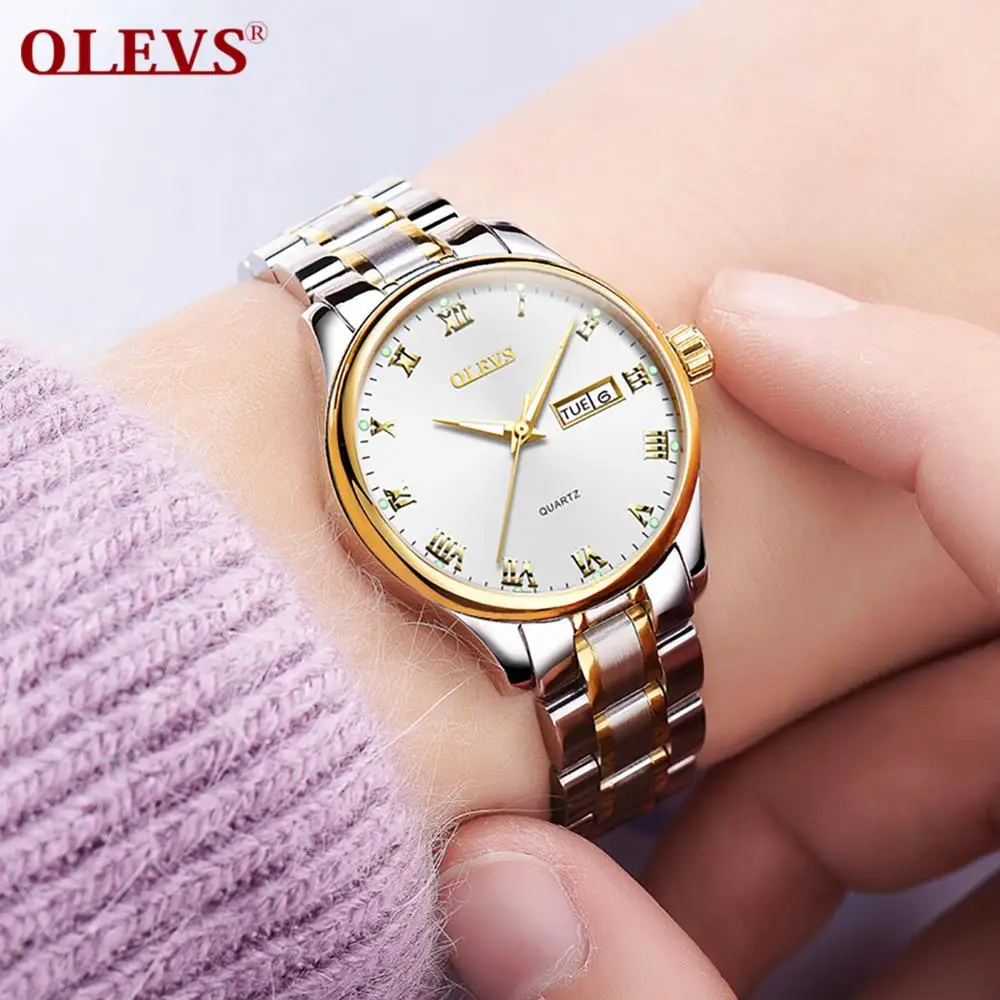 BEST QUALITY OLEVS New gold women's watch waterproof double calendar luminous needle women's watch creative simp